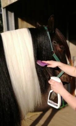 A unique, natural conditioner for manes, tails and coats that deep conditions each strand of hair leaving it strong, silky and flowing. Simply mist through dry or wet hair. Regular use helps prevent the build-up of dirt. Ideal for use when plaiting, quarter-marking and grooming to give coats a luxurious shine and flat finish. Free from all prohibited substances under current FEI and HRA rules.