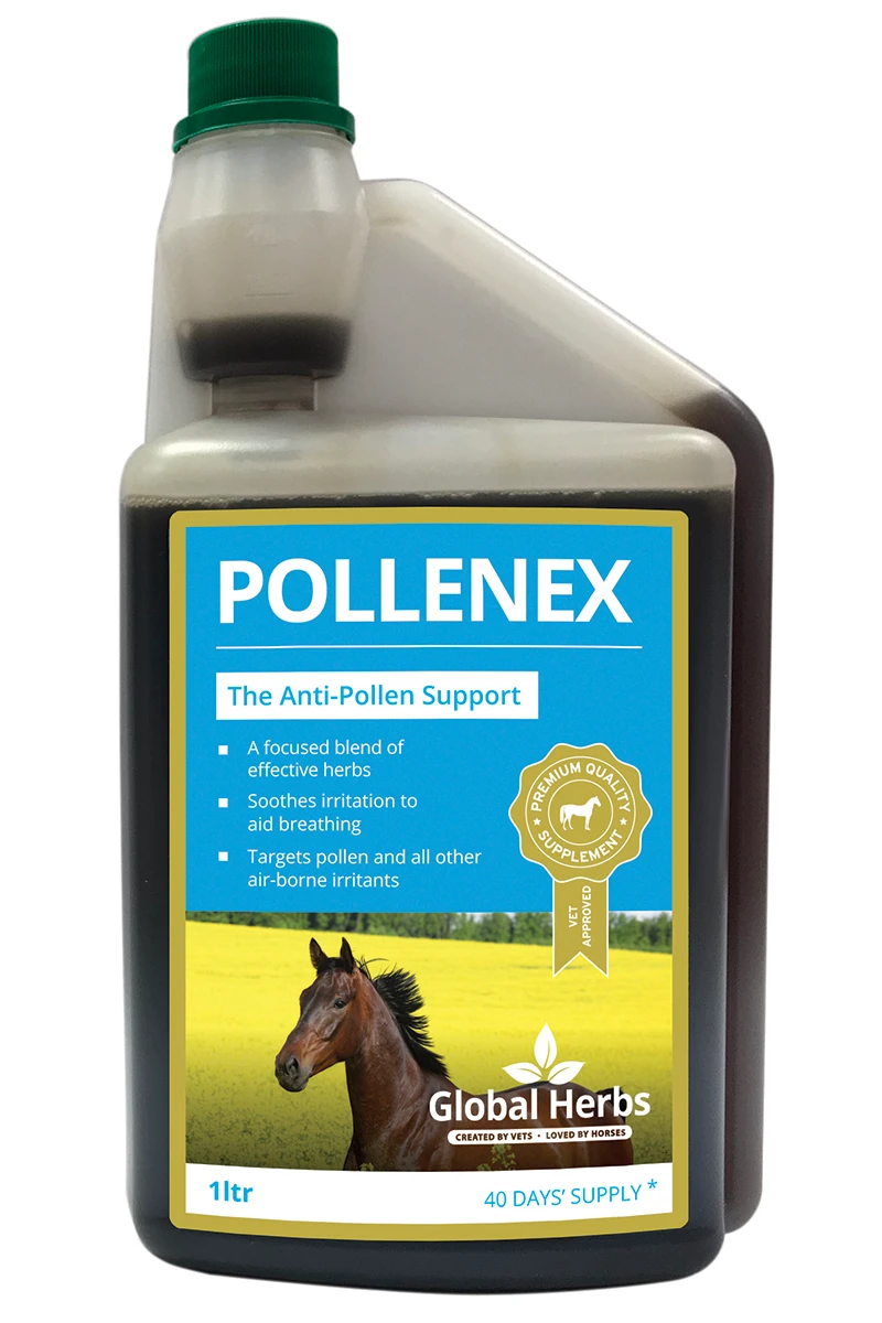 PolleneX offers soothing comfort from irritating airborne particles. Specifically designed to support the respiratory system, this highly effective herbal blend can be used all year round – for high pollen count in summer and dusty stables in winter. PolleneX offers a natural approach for respiratory worries and helps to soothe the nose, eyes and head. Suitable for all horses and ponies.