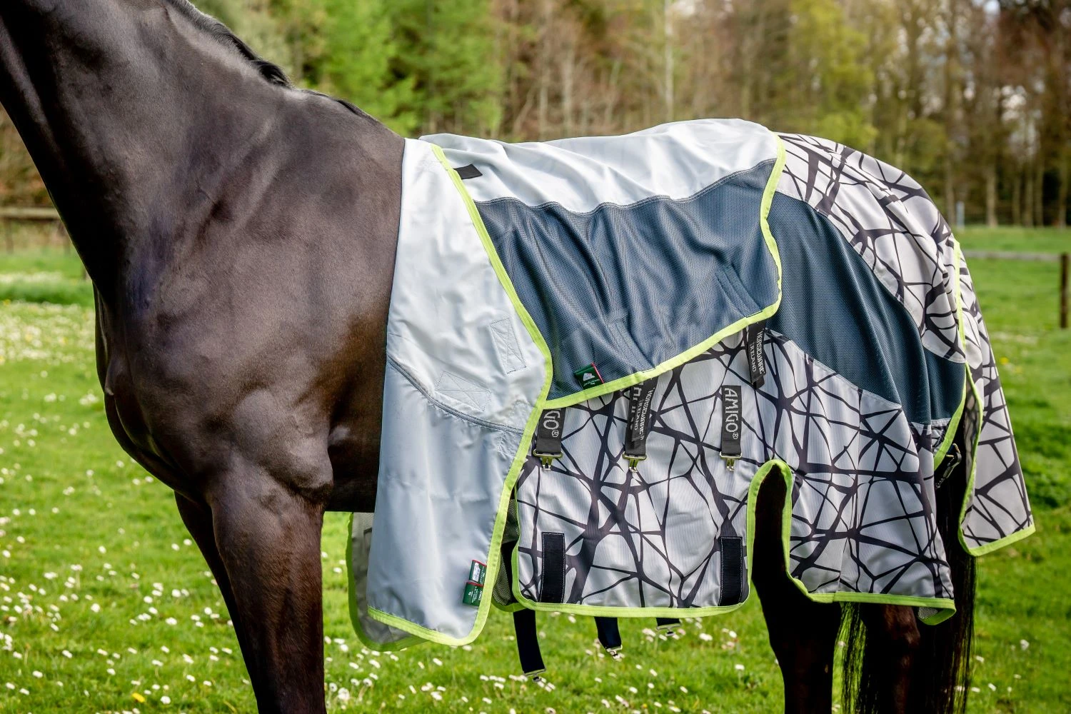 The Amigo 3-In-1 Camofly Waterproof Fly Rug has been cleverly designed by Horseware with a monochromatic pattern that helps to protect horses from pesky flies landing on their body. The layered lines this rug act to create an optical illusion in the eye of a fly, which breaks up the shape of the horses. This causes insects to struggle to identify the horse as a target to land on.