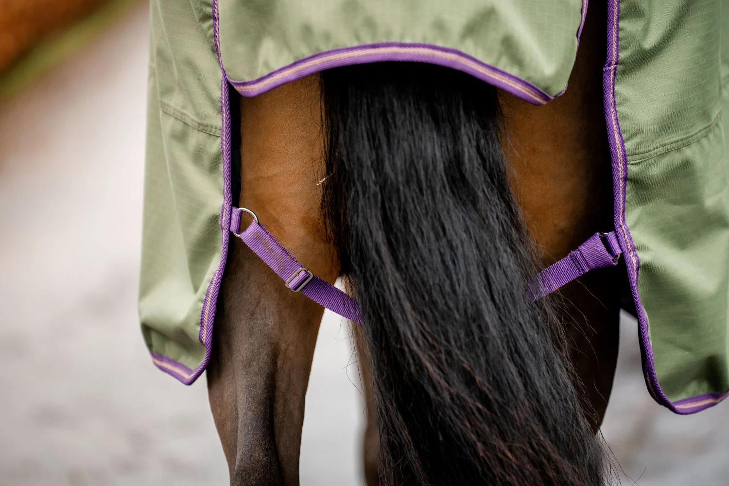 Made with a 600D ripstop super tough, waterproof and breathable outer and antibacterial, anti-static, shine enhancing polyester lining, this rug features classic front, double fastenings for added security.