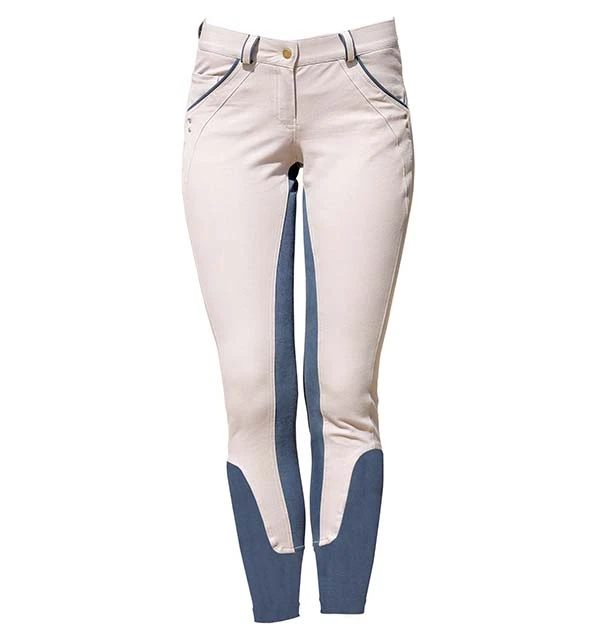 The Horseware Ladies Denim Breeches are super stylish and flattering breeches ideal for everyday wear. The Breeches offer a great stretch without loosing shape and feature a full seat in Daewoo stretch and lycra socks for comfort with long boots. The Breeches offer a Gutos button fastening, a Horseware branding elastic band within the waist for optimal fit, contrast stitching and Horseware branding.