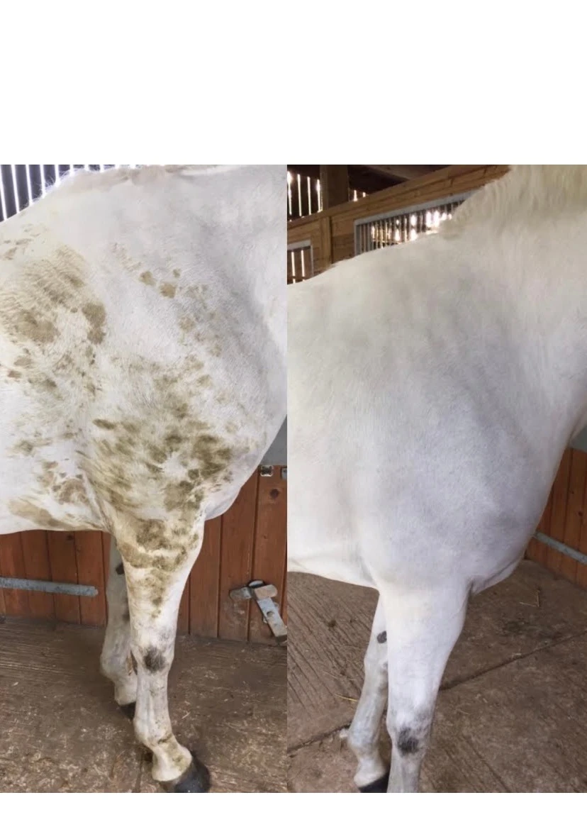 Polar White is a spectacular stain remover spray which will help achieving instant whiteness. Can be used on stable and grass stains as well as on feathers, socks and tails to remove stubborn discolouration. It is a clear, fresh smelling spray, giving excellent results on white and light coloured body areas.