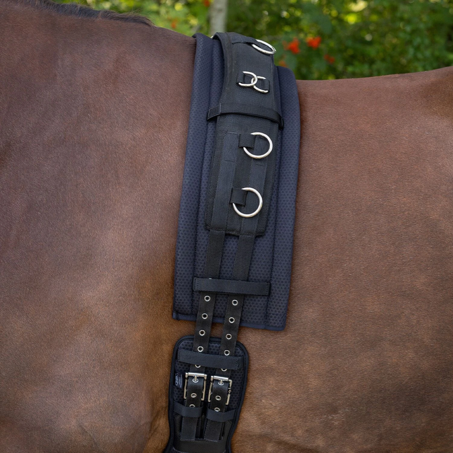 The lunging pad is equipped with memory foam, which conforms to your horse’s back, ensuring optimal pressure distribution